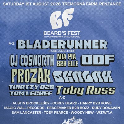 What's OnBeard's Fest 2026 curated by Groove on Sight. Saturday 1st August Penzance Cornwall 1 day Camping Not-for-profit in loving memory of Alfie Beard